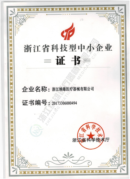 浙江省科技型中小企業證書